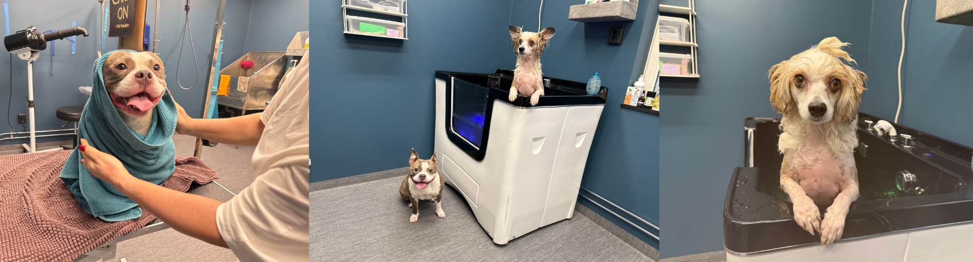 Ozonbad innebär att hunden badas i ozonberikat vatten. Ozon är en naturlig form av syre med antibakteriella, svampdödande och rengörande egenskaper, som används inom både djur- och humanvård.